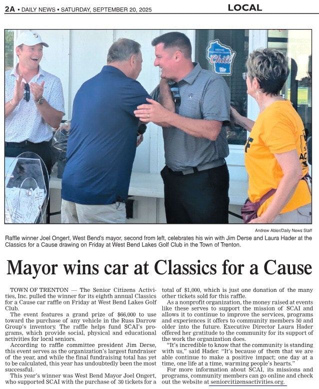 THANKS AGAIN TO EVERYONE WHO SUPPORTED THIS COLLABORATIVE FUNDRAISER OF TWO GREAT LOCAL NON-PROFIT ORGANIZATIONS - WEST BEND West Bend Sunrise Rotary Club & SENIORS CITIZENS ACTIVITIES, INC.