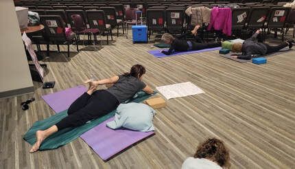 A form of stretching practiced on the floor utilizing a yoga mat and bolster. Bring a towel for support.